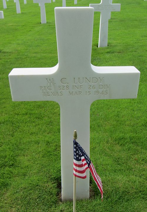 Pfc W. C. Lundy worked on a farm before he enlisted at Camp Wolters, Texas on 16 January 1942.He was killed by artillery shell fragments in his head and chest.