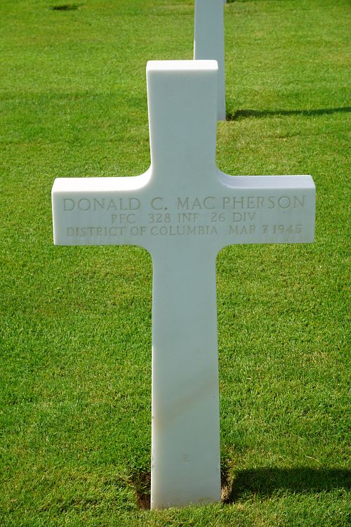 Pfc Donald C. Mac Pherson was employed at the S And H Garage before he enlisted at Fort Myer, Virginia on 9 November 1943.He died in a field hospital to the effects of artillery shell fragments to his spleen.