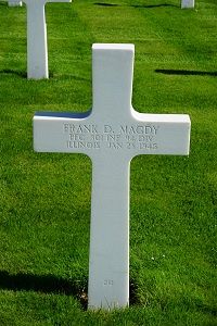 Pfc Frank D. Magdy attended Crane Technical High School and was employed at Pheoll Manufacturing Company.Source of information: Peter Schouteten, www.abmc.gov, www.wwiimemorial.com, www.ancestry.com - Headstone and Interment Record / Ashley V Vosecek Family Tree, http://www.94thinfdiv.com