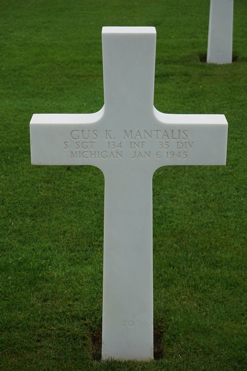 S/Sgt Gus K. Mantalis was a filer, grinder, buffer and metal polisher before he volunteered for the Army of the United States at Fort Lauderdale, Florida on 14 January 1941.He was killed by artillery shell fragments.