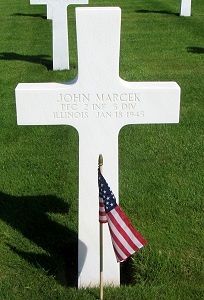 Pfc John Marcek worked in a machine shop before he enlisted in Chicago, Illinois on 11 April 1941.Source of information: Leo Minne, www.abmc.gov, www.archives.gov – WWII Enlistment Record, www.ancestry.com – 1920/1930/1940 Census / U.S. Headstone and Interment Record, A footsoldier for Patton / Michael C. Bilder James G. Bilder, The 5th Infantry Division in the ETO