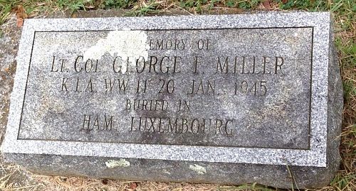 After the barrage by the 301st Field Artillery Battalion, Company A again moved out onto the deadly slope, only to face the same intensive enemy fire. Every weapon available to the battalion was used without results. Finally, German artillery fire began to fall among the attacking Americans. Colonel Miller came forward to see what could be done to get his battalion moving. Concerned over the plight of Company B as well as his exposed men on the open slope, he moved into enemy artillery range and was cut down by a burst of fire and was killed almost immediately.Lt Col George F. Miller is remembered at the Mount Hebron Cemetery in Winchester, Virginia.