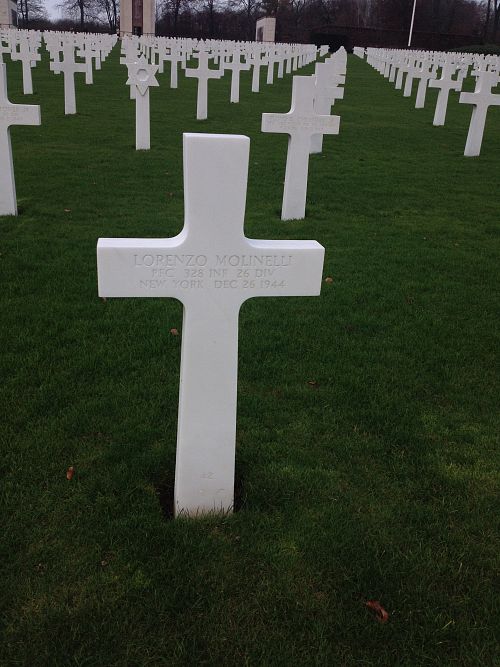 Pfc Lorenzo Molinelli attended high school for one year and was a meat cutter before he enlisted at Camp Upton, New York on 13 January 1942.He was killed by artillery shell fragments in his stomach.
