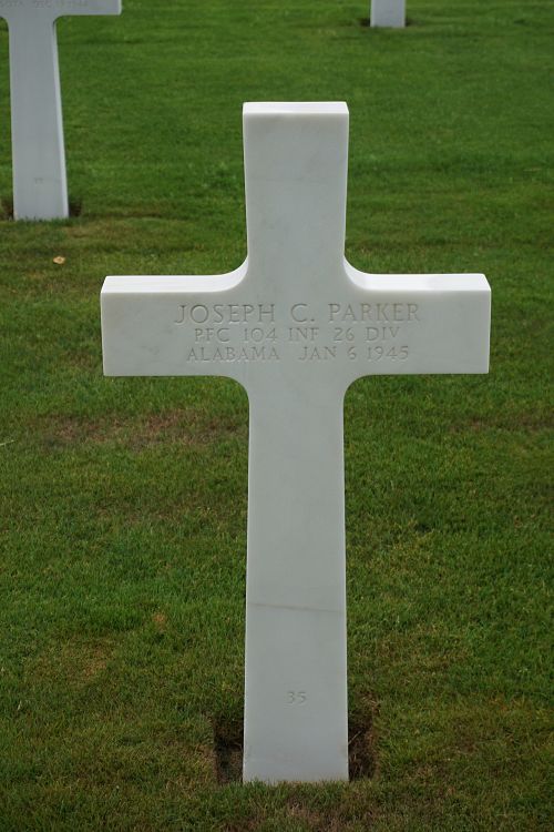 Pfc Joseph C. Parker attended high school for two years and was employed at the Construction Engineering Company before he enlisted at Fort McClellan, Alabama on 9 April 1943.Source of information: Peter Schouteten, www.abmc.gov, www.wwiimemorial.com, www.archives.gov - WWII Enlistment Record, www.ancestry.com - Headstone and Interment Record / U.S. WWII Draft Cards Young Men / 1930 Census / Ashley Gilley Family Tree, www.fold3.com - 26th Infantry Division
