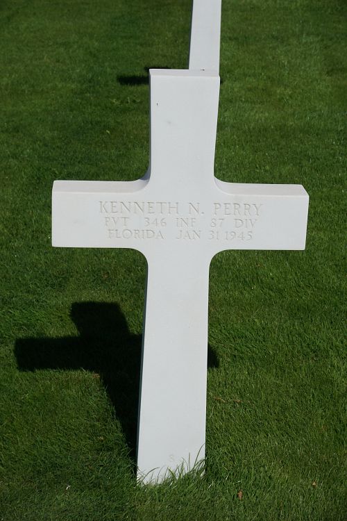 Pvt Kenneth N. Perry attended high school for four years and was a welder and flame cutter at the Colemanns machine shop before he enlisted at Camp Blanding, Florida on 13 July 1944.He died in a field hospital to the effects of a gunshot.