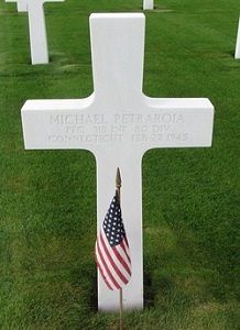 Pfc Michael Petraroia immigrated to the U.S. on 28 September 1925.He attended high school for two years and worked in the machine shop of the Autorye Co. before he enlisted in Hartford, Connecticut on 18 February 1943.