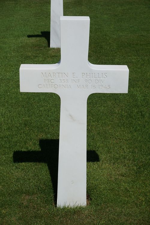Pfc Martin E. Phillis attended high school for 1 year before he enlisted in Los Angeles, California on 31 August 1944.Source of information: Peter Schouteten, www.abmc.gov, www.wwiimemorial.com, www.archives.gov - WWII Enlistment Record, www.ancestry.com - Headstone and Interment Record / Wall Family Tree / 1940 Census, www.findagrave.com