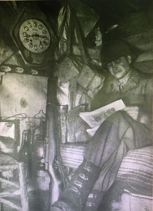 On one of the photos Sgt Pierce poses in a dugout near St. Nazaire, France.
