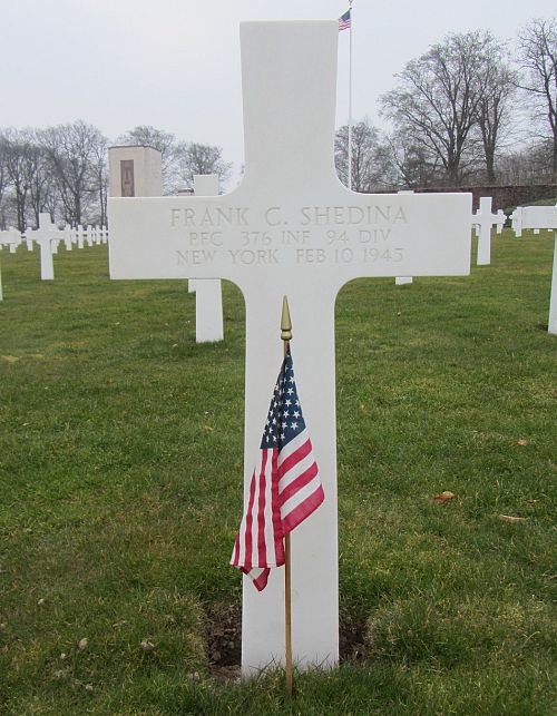Pfc Frank C. Shedina was a bartender before he enlisted in Albany, New York on 5 December 1942.Source of information: Peter Schouteten, www.abmc.gov, www.wwiimemorial.com, www.archives.gov - WWII Enlistment Record, www.ancestry.com - Headstone and Interment Record / 1910/1940 Census, http://94thinfdiv.com