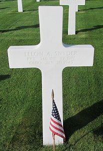 Pvt Lelon A. Snyder enlisted at Fort Benjamin Harrison, Indiana on 15 March 1944.Source of information: Peter Schouteten, www.abmc.gov, www.wwiimemorial.com, www.archives.gov - WWII Enlistment Record, www.ancestry.com - Headstone and Interment Record / 1930 Census / U.S. WWII Draft Cards Young Men, http://87thinfantrydivision.com