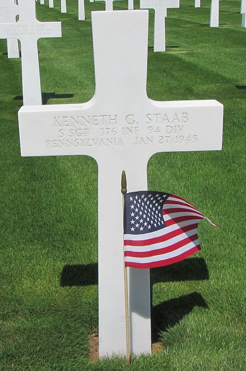 S/Sgt Kenneth G. Staab attended high school for 4 years and was a car washer and greaser before he enlisted in Harrisburg, Pennsylvania on 30 November 1942.He was killed by shrapnel.