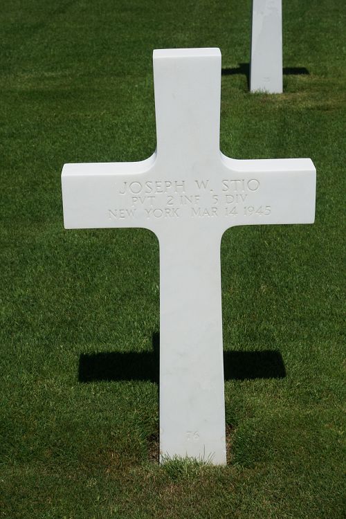 Pvt Joseph W. Stio enlisted in New York City, New York on 7 December 1942.Source of information: Leo Minne, www.abmc.gov, www.archives.gov - WWII Enlistment Record, www.ancestry.com - 1920/1930/1940 Census / CFT + Atena Lucana family tree, "A footsoldier for Patton" - Michael C. Bilder/James G. Bilder