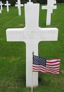 Pfc Richard J. Stockmaster graduated from St. Bernard's High School and was a chauffeur for the Endslow Cream Station. He enlisted at Fort Thomas, Newport, Kentucky on 4 March 1944 and was sent overseas in August 1944.He was wounded a first time during the battle of Metz on 28 September 1944. After 3 months of hospitalisation in England, he returned to combat duty in January 1945.