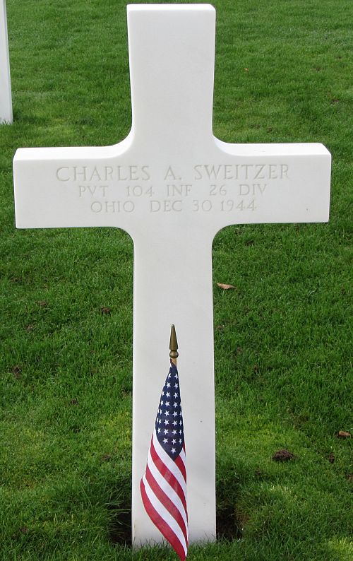 Pvt Charles A. Sweitzer attended Greensburg High School and Miami University and was a machinist apprentice at the W.W. Bliss Company of Salem before he enlisted in Akron, Ohio on 24 July 1943. He was sent overseas in August 1944.He is remembered at the Hope Cemetery in Salem, Columbiana County, Ohio.