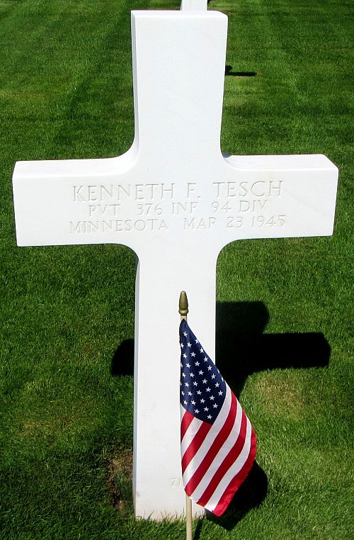 Pvt Kenneth F. Tesch graduated from Murray High School in St Paul and attended the University of Minnesota for one year.He joined the Army at Fort Snelling, Minnesota on 14 December 1943.