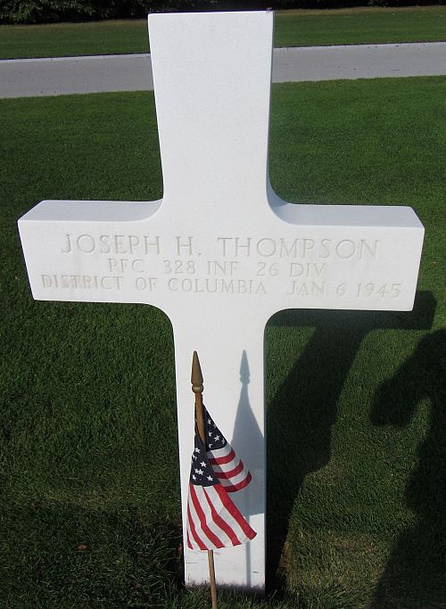 Pfc Joseph H. Thompson was employed at the Celanese Corporation and Farming before he enlisted at Fort George G. Meade, Maryland on 13 April 1944.Source of information: Peter Schouteten, www.abmc.gov, www.wwiimemorial.com, www.archives.gov - WWII Enlistment Record, www.ancestry.com - Headstone and Interment Record / U.S. WWII Draft Cards Young Men, www.fold3.com - 26th Infantry Division