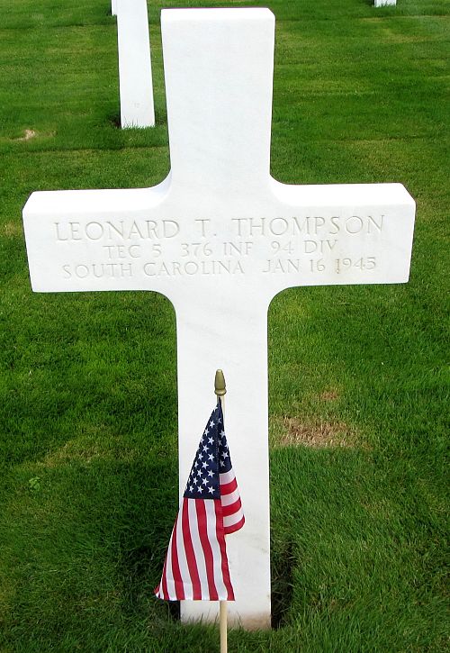 T/5 Leonard T. Thompson graduated from Wofford College in 1936 and was employed at Cudd & Coan Company.He enlisted at Fort Jackson Columbia, South Carolina on 5 December 1942.