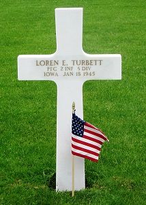 Pfc Loren E. Turbett was a stone and brick mason and contractor before he enlisted at Camp Dodge, Iowa on 3 May 1944.His son Floyd was still a baby which he never had seen.