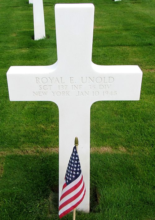 Sgt Royal E. Unold was employed at the Keystone Photo Engraving Company before he enlisted in New York City, New York on 20 March 1943.He was killed by artillery shell fragments to his shoulder.