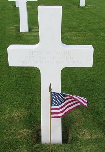 Pfc Hoy W. Ware enlisted at Fort Thomas in Newport, Kentucky on 10 April 1944.Source of information: Peter Schouteten, www.abmc.gov, www.wwiimemorial.com. www.archives.com - WWII Enlistment Record, www.ancestry.com - Headstone and Interment Record / Ware Family Tree / 1940 Census, www.87thinfantrydivision.com, www.findagrave.com