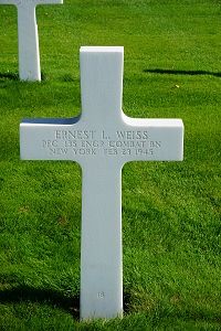 Pfc Ernest L. Weiss was a foreman at the Lane Construction Corporation before he enlisted in Albany, New York on 11 January 1944. He was sent overseas in August 1944.He was killed by artillery shell fragments to his stomach.