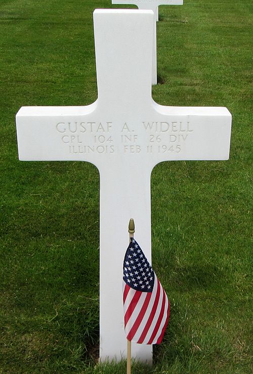 Cpl Gustaf A. Widell attended East High School in Rockford and worked at Rockford Screw Products before he enlisted in February 1942.Source of information: Peter Schouteten, www.abmc.gov, www.wwiimemorial.com, www.ancestry.com - Headstone and Interment Record / 1940 Census, www.findagrave.com – ForgetMeNot / Silvano Theunissen, www.fold3.com – 26th Infantry Division