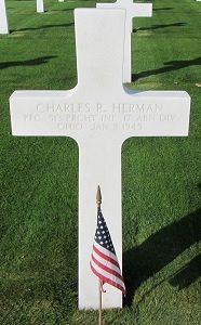 Pfc Charles R. Herman attended Collinwood High School and was a stock clerk before he enlisted in Cleveland, Ohio on 21 July 1943. He was sent overseas in August 1944.He was first buried at the Temporary American Military Cemetery of Grand Failly, France.