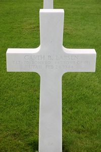 Garth B. Larsen attended the University of Utah and was an actor.He joined the Air Corps of the U.S. Army Reserve in Salt Lake City, Utah on 30 April 1942.