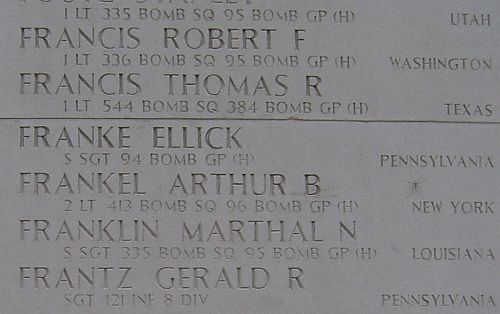 S/Sgt Franke is also remembered with a memorial at Arlington National Cemetery in Arlington, Virginia.