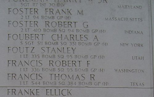 2nd Lt Frank M. Foster graduated from Leominster High School, attended Worceiser Polytechnic Institute and worked in an aircraft factory.He joined the Air Corps of the U.S. Army Reserve as an aviation cadet at Fort Devens, Massachusetts on 23 October 1942.