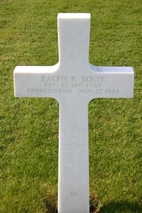 Pvt Ralph B. Sooy volunteered for the US Army in Philadelphia, Pennsylvania on 25 August 1942.He attended Pottstown High School in Pottstown. Before induction, he was employed at the Mrs. Smith's Pies bakery. He was a member of the Transfiguration Lutheran Church. He went overseas in November, 1943.