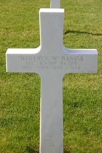 Pfc Whitney W. Bangs enlisted in Newark, New Jersey on 26 June 1943.Whitney Bangs was a quiet and pleasant boy, imperturbable, genuine, very friendly, a steady worker, with much more influence than he ever knew. He took part in numerous school activities and was a particularly effective stage manager of the Dramatic Club. One month after his graduation from the school, he was inducted into the army, and after basic training was assigned to A.S.T.P. at the University of Florida. When A.S.T.P. was discontinued, he was transferred to the infantry. He went overseas in August 1944. In November, he was wounded, but he returned to his unit after a short period in a hospital. In February 1945, Whitney Bangs was reported missing in action since 21 January. Later he was reported a prisoner of war, and still later to have died in Germany, March 5, 1945.