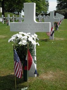 The airplane was attacked by an enemy fighter. After the attack the airplane exploded in mid-air.S/Sgt Raymond W. Hicklin was initially buried at the Rotterdam-Crooswijk Cemetery.