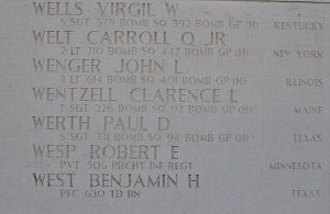 S/Sgt Paul D. Werth was employed at The Texas Oil Company.The aircraft was seen with #1 and #4 engines out, with black smoke pouring out. Wheels were down and bombs were believed to be dropped. The left wing dropped off. The A/C was believed to blow up and disintegrate.