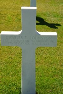 1st Lt Charles E. Johnston first buried at Temporary American Military Cemetery Ardennes, Belgium Block GG, Row 1, Grave 19.
