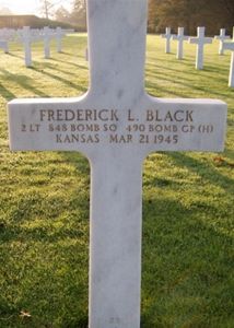 Lt Black and Carl E. Sten, the ballturret gunner, were close friends at school and arranged to be assigned to the same plane. Carl Sten in buried at Fort Leavenworth National Cemetery.
