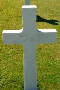 Pvt Adolph J. Yonke was a clerk before he enlisted in New York City, New York on 26 July 1943.Source of information: Terry Hirsch, Raf Dyckmans, www.wwiimemorial.com, www.archives.gov, www.fold3.com, WWII Draft Card, New York Marriage License Index