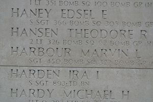 The pilot, 1st Lt Joseph A. Jones, washed ashore on 19 June 1943 near Bergen. Bombardier-Navigator, 2nd Lt Norris K. Calkins, washed ashore on 6 June 1943 near Castricum and was initially buried on 8 June 1943 in the community cemetery of Bergen, the Netherlands. The gunners, T/Sgt Marvin L. Harbour and S/Sgt Milton E. Littrell, are still missing and commemorated on the Walls of the Missing at Margraten. Robert P. Steffen washed ashore on 13 June 1943 near Petten, the Netherlands, and was initially buried in Bergen and later reburied at the American War Cemetery Ardennes in Belgium.