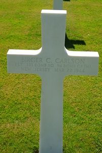 Lt Carlson was initially buried at the POW Cemetery in Elsgrund-Doberitz. His remains were disinterred at the end of November, beginning of December 1946 and evacuated to Ardennes Cemetery