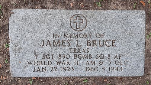 T/Sgt James L. Bruce attended Corpus Christi High School and was employed at Chapman Lumber Company.The airplane left formation after bombs away and was hit by fighters and flak. The crew was reported to have bailed out. No word was received from any crew member.
