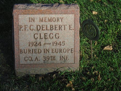 Pfc Delbert E. Clegg was born on a farm and graduated from Fayette Consolidated School in 1943 after he went working on a farm, most likely the one of his family.He enlisted at Camp Dodge, Iowa on 30 March 1944 and was sent overseas in August of the same year.