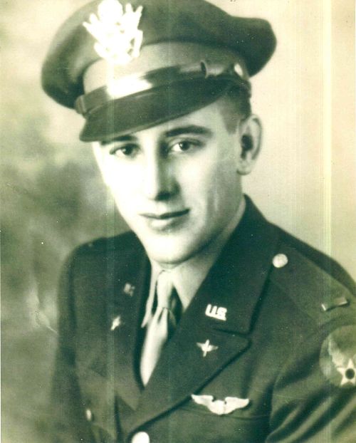 "I was flying as co-pilot in the aircraft leading the flight. The lost aircraft was flying on our left wing. I first observed Lt. Dow's aircraft as we turned off the target, and his plane came directly under ours. The plane was in a steep dive, and smoke was coming from its tail. Later, I saw flames come out of the left side of the plane. At the same time, I saw one chute leave the aircraft and blossom out. Diving earthward, the plane made a shallow turn to the left and hit in the center of a small town. The aircraft exploded immediately upon hitting the ground."