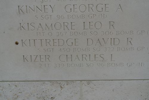 S/Sgt David R. Kittredge was a chauffeur before he volunteered for the Air Corps of the U.S. Army in Milwaukee, Wisconsin on 21 August 1942.Statement of Donald E. Sheperd, O-704507, 1st Lt., 450th Bomb Squadron: "I was flying as co-pilot in the aircraft leading the flight. The lost aircraft was flying on our left wing. I first observed Lt. Dow's aircraft as we turned off the target, and his plane came directly under ours. The plane was in a steep dive, and smoke was coming from its tail. Later, I saw flames come out of the left side of the plane. At the same time, I saw one chute leave the aircraft and blossom out. Diving earthward, the plane made a shallow turn to the left and hit in the center of a small town. The aircraft exploded immediately upon hitting the ground."