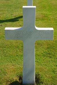 Pvt Stanley J. Boryzyska attended high school for one year and was employed at Pratt and Whitney. He enlisted in Springfield, Massachusetts on 11 November 1943.He was first buried at Block B, Row 7, Grave 161.