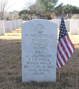 2nd Lt Dwight K. Booth graduated from Thomas Jefferson High School in San Antonio, Texas in 1942 and attended Texas A&M College.He volunteered for the Air Corps of the U.S. Army in Oklahoma City, Oklahoma on 15 December 1942.