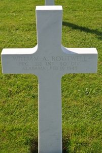 Pfc William A. Boutwell enlisted at Fort McPherson Atlanta, Georgia on 18 February 1942.First he was registered as missing in action. On 1 May 1945 he was identified. According to data from the IDPF he was buried by German citizens at the village cemetery in Kruchten, Germany. Later he was evacuated to the Temporary American Military Cemetery of Foy, Belgium.