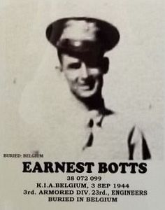 Pfc Ernest E. Botts enlisted at Ft Bliss, El Paso, Texas on 10 February 1942.Source of information: Peter Schouteten, Carla Mans, www.wwiimemorial.com, www.archives.gov, www.ancestry.com - 1940 Census / U.S. WWII Draft Cards Young Men
