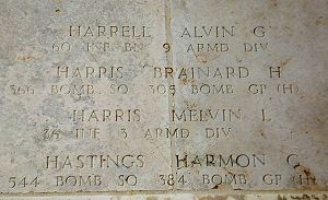 Alvin Harrell graduated from high school and attended college for one year. He worked for a railroad company.He enlisted on 29 March 1943 at Camp Perry, Lacarne, Ohio.