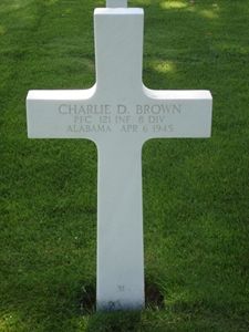 Pfc Charlie D. Brown was reported wounded in action on 24 December 1944 for which he was awarded the Purple Heart Medal a first time. After recovering he rejoined his unit.He was awarded the Bronze Star for heroic service in connection with military operations against the enemy on 18 September 1944 in France. Pvt. Brown volunteered for a patrol into a town ahead of his own lines. While moving toward the town over terrain characterized by minefield, the patrol flanked and captured a German 57-mm. gun and its crew. It also captured 6 German officers from whom it was learned a German company was located a short distance. Commandeering two captured vehicles, they took the command post by surprise and captured the entire company. The action of the patrol resulted in the capture of 12 German officers, 186 enlisted men, the town and quantities of supplies.