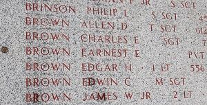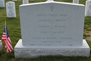 The Department of Defense POW/Missing Personnel Office (DPMO) announced that the remains of two Army soldiers; missing in action were identified on 30 March 2005 and returned to their families for burial. They are Sgt John T. Puckett and Pvt Earnest E. Brown.On 15 January 1945, Puckett and Brown were searching for German soldiers in a wooded area near Elsenborn, Belgium. They were ambushed and came under intense enemy machine gun and mortar fire. Eyewitnesses indicated they were killed, but their bodies could not be recovered due to enemy activity.